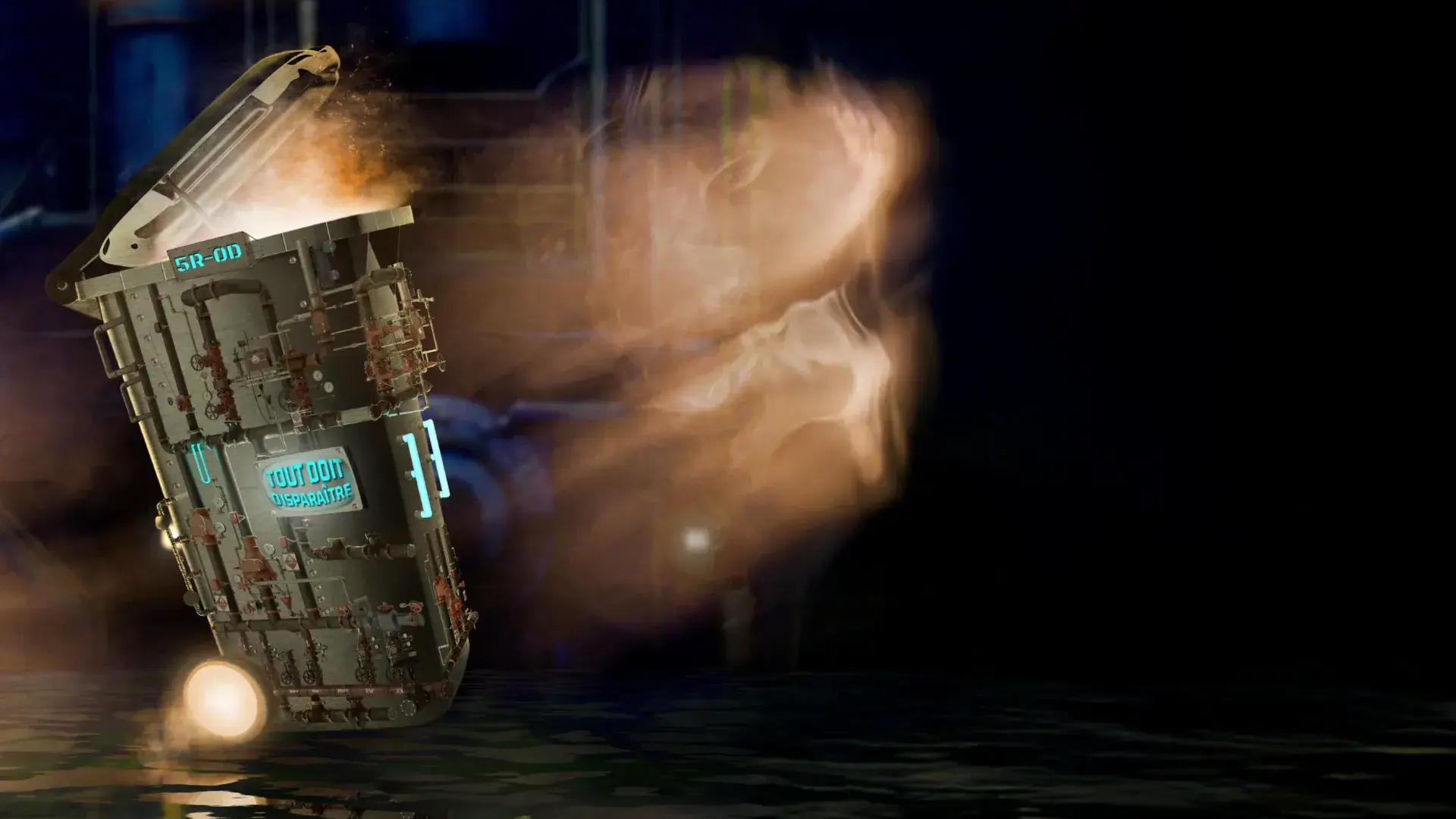 Un laboratoire clandestin a mis au point 5R-0D, une machine capable de faire disparaître les déchets ! Pour d’obscures raisons, ils ne souhaitent pas que cette machine soit découverte. Ils ont alors programmé son autodestruction. Vous vous êtes infiltrés dans leur atelier et êtes face à cette curieuse invention. Vous avez seulement 45 minutes pour empêcher sa destruction et révéler au monde entier comment faire disparaître tous nos déchets. Attention, 5R-0D vous réservera quelques surprises …
